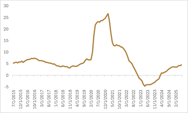 This is different from earlier in the year when the administration was advocating for a growth detox from DODGE initiatives. The narrative from the administration has now switched to growing out of the debt, which should signal a more pro-growth mindset where fiscal policy can be tweaked to mitigate downside risks to growth and consumption. Political incentives likely reinforce that tilt: approval ratings are soft, and heading into the midterms, the White House is unlikely to risk losing control of Congress if approval ratings drop any further due to a weakening economy.